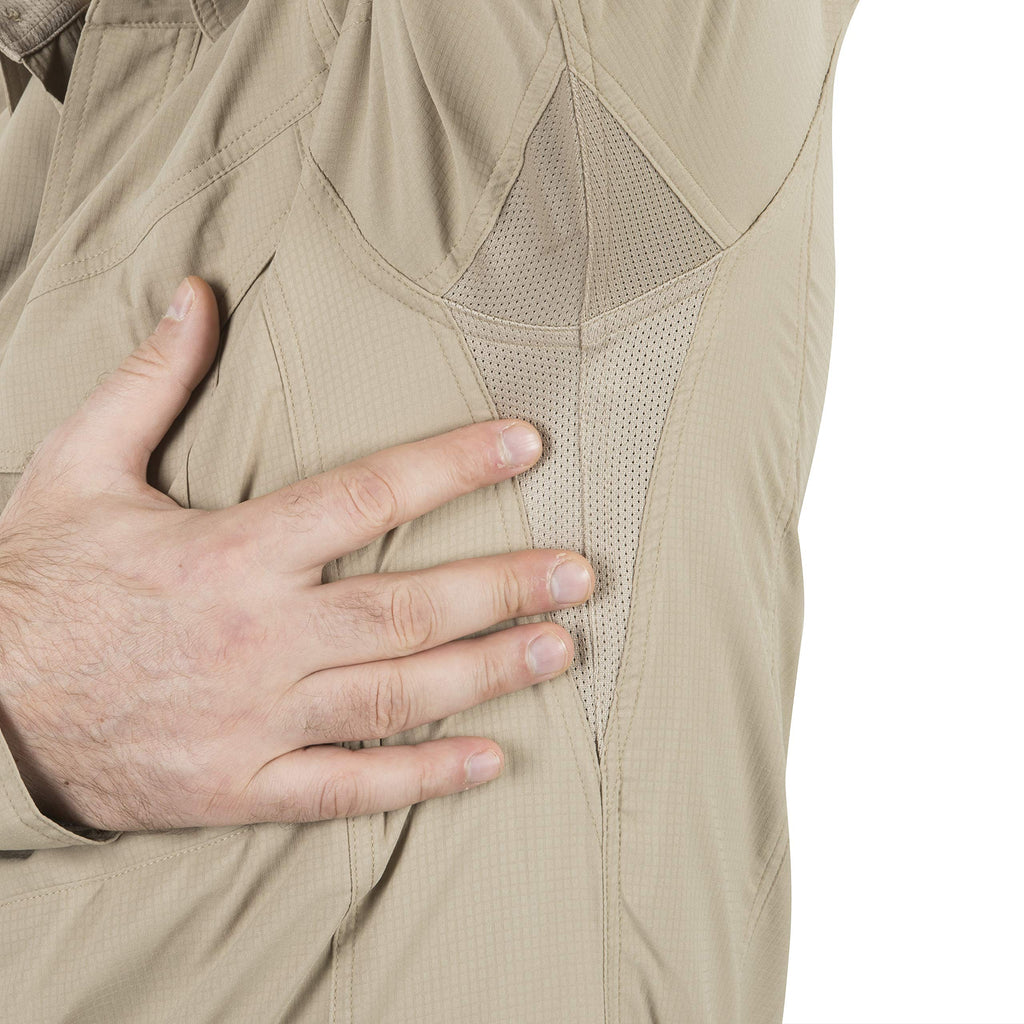 - Tejido tropical transpirable: evacuación eficaz del sudor para máximo confort en climas cálidos