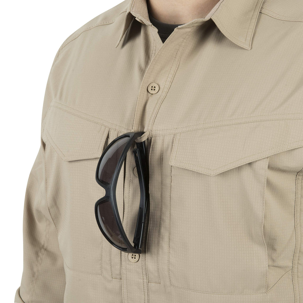 La camisa Helikon-Tex Defender Mk2 Tropical en Castle Rock redefine el concepto de prenda táctica versátil. Diseñada específicamente para climas cálidos, esta camisa de manga larga combina protección solar completa con una transpirabilidad excepcional gracias a su tejido tropical técnico avanzado.
