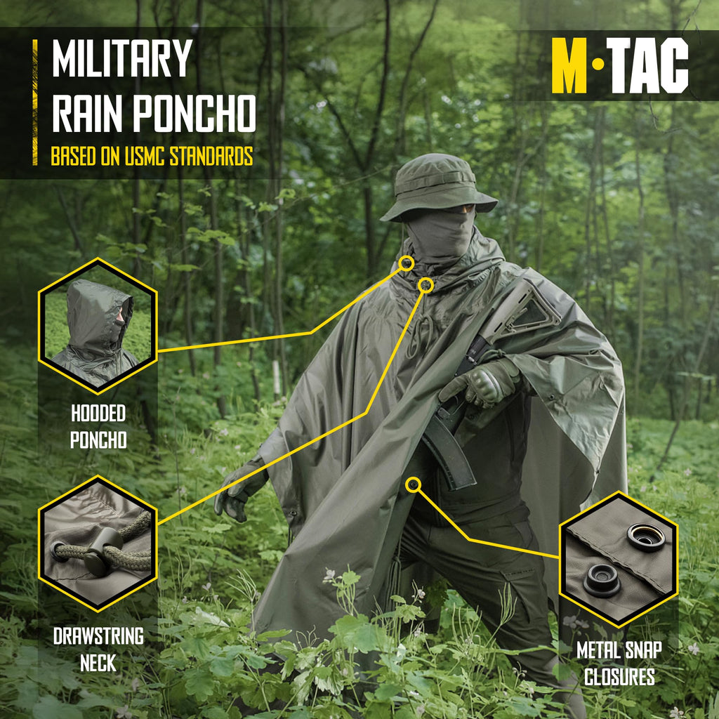 El poncho impermeable M-Tac en color oliva está diseñado siguiendo el modelo utilizado por el ejército estadounidense, ofreciendo una protección fiable contra las condiciones meteorológicas adversas. Fabricado en rip-stop polyester, un material resistente y duradero que evita el desgarro y proporciona una barrera efectiva contra la lluvia. Su diseño militar garantiza versatilidad de uso, adaptándose tanto a actividades al aire libre como a situaciones profesionales que requieran protección contra la humedad. La construcción en rip-stop polyester asegura que el poncho mantenga su integridad estructural incluso en condiciones exigentes. El color oliva proporciona un acabado discreto y funcional, característico del equipamiento militar. Este poncho combina practicidad y resistencia, siendo una solución eficaz para quienes buscan protección impermeable de calidad profesional.
