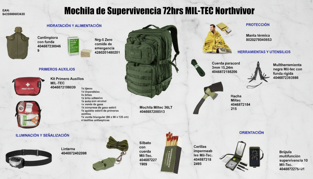Mochila de Supervivencia MIL-TEC x Northvivor – Resistencia y Funcionalidad para Cualquier Aventura