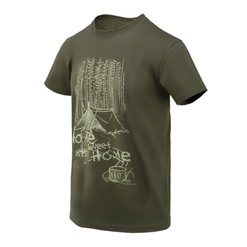 La camiseta Helikon-Tex Home Sweet Home en color caqui representa la perfecta fusión entre la calidad militar y el estilo urbano contemporáneo. Esta prenda destaca por su construcción robusta y su diseño distintivo que refleja la experiencia de Helikon-Tex en equipamiento táctico aplicado a la moda casual.