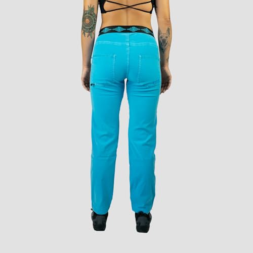 Descubre el pantalón de escalada TARYA WS en color turquesa, diseñado para ofrecerte el máximo confort y libertad de movimiento en cada aventura. Su tejido ligero y transpirable permite una excelente ventilación, manteniéndote fresco incluso en las rutas más exigentes. Además, su ajuste ceñido y elástico se adapta perfectamente a tu cuerpo, garantizando que no te sientas restringido al escalar.