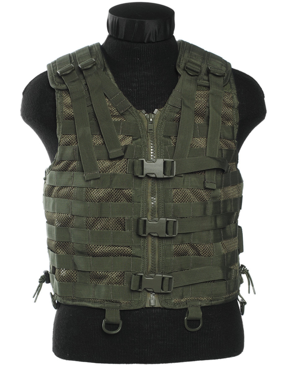 Fabricado con materiales de alta calidad, este chaleco ofrece una distribución equilibrada del peso que reduce la fatiga durante largas jornadas de uso. Su diseño ergonómico se adapta cómodamente al cuerpo, mientras que el color verde oliva proporciona un camuflaje efectivo en entornos naturales.