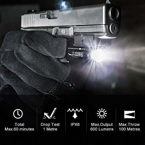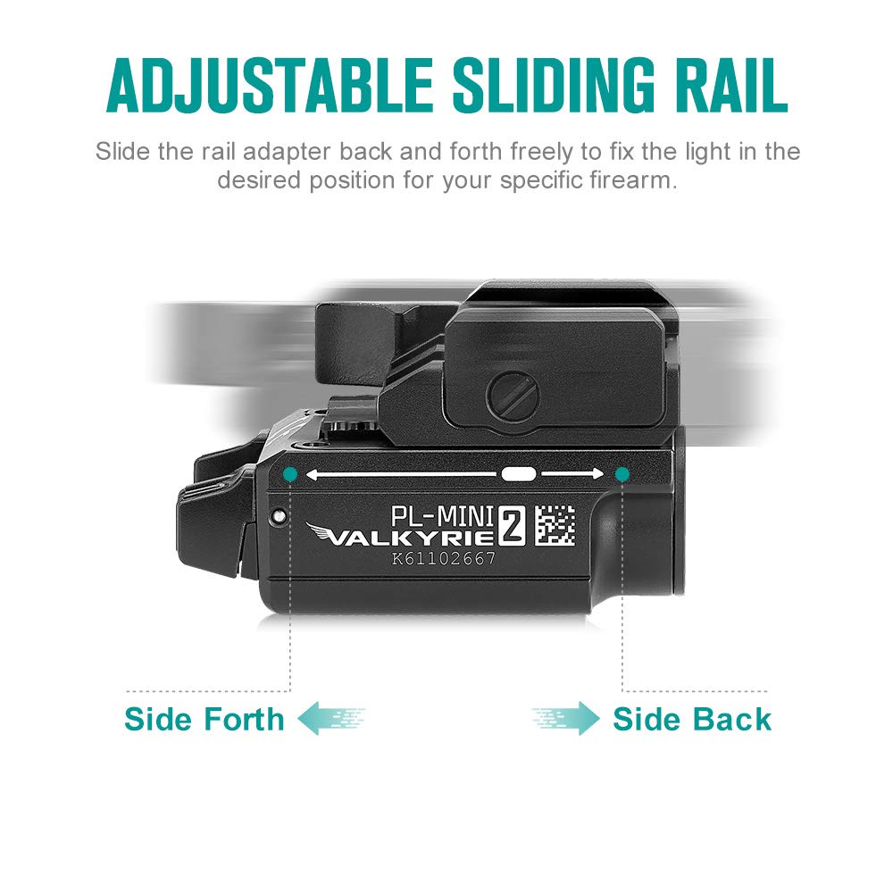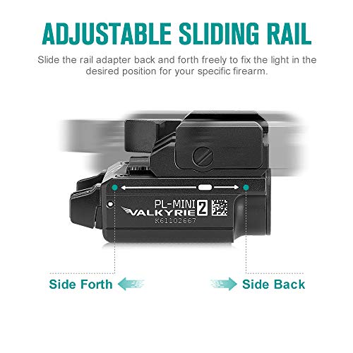 OLIGHT PL-Mini 2 Valkyrie Linterna Táctica con Riel Ajustable Carga Magnética Potente 600 Lúmenes para Caza Investigación Exterior(negro)