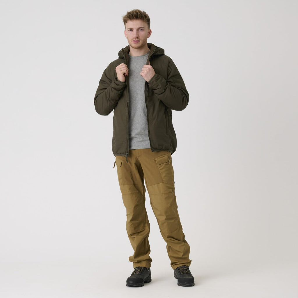La chaqueta Wolfhound Hoodie de Helikon-Tex representa la perfecta fusión entre funcionalidad táctica y estilo urbano contemporáneo. Diseñada específicamente para hombres que buscan una prenda versátil y resistente, esta chaqueta en color coyote se adapta tanto a actividades outdoor como al uso diario en la ciudad.